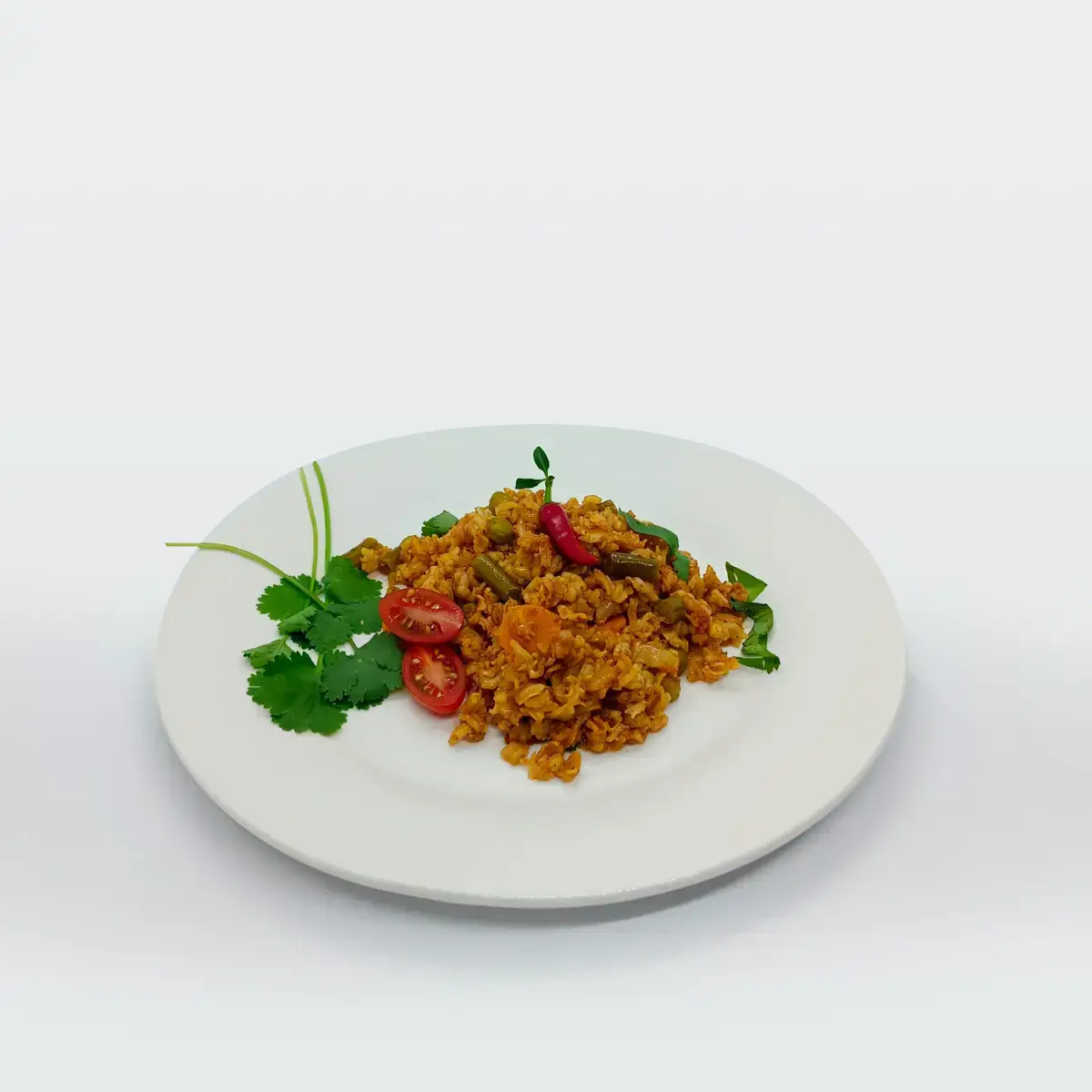 INGREDIENTS: Brown rice, onion, garlic, ginger, tomatoes, peas, carrots, celery, green beans, cayenne pepper, garam masala, coriander, turmeric, cumin, broth
