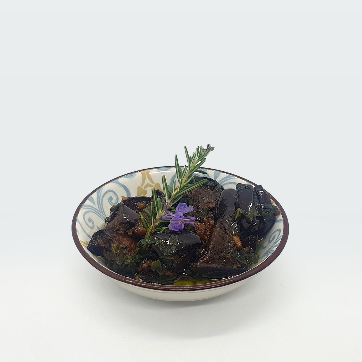 INGREDIENTS: brinjal, garlic, fresh ginger, fresh basil, salt, pepper and olive oil
